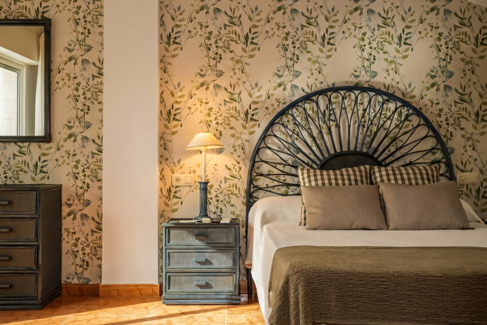 On the upper floor there is a large open-plan room that functions as a second living room or hallway, giving access to the main bedroom with a dormer-style ceiling. This room has a private en-suite bathroom and direct access to a west-facing private terrace, equipped with awnings. The house is equipped with double-glazed windows, security grills, pine built-in wardrobes, and gres (stoneware) floors, ensuring easy maintenance and good overall condition.