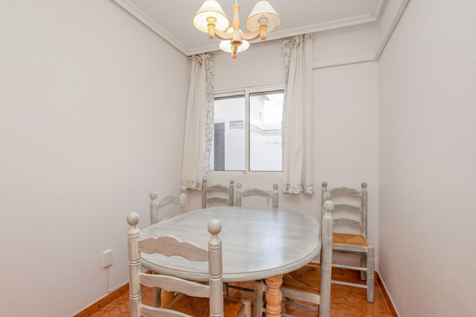 This single-family home is located on Pedro Sánchez Street, in a consolidated residential area of Torre de la Horadada, just three minutes on foot from the sea. The property has a constructed area of 108 m² (94 m² usable) and stands out for its versatile layout that allows the ground floor to be used as a complete residence.